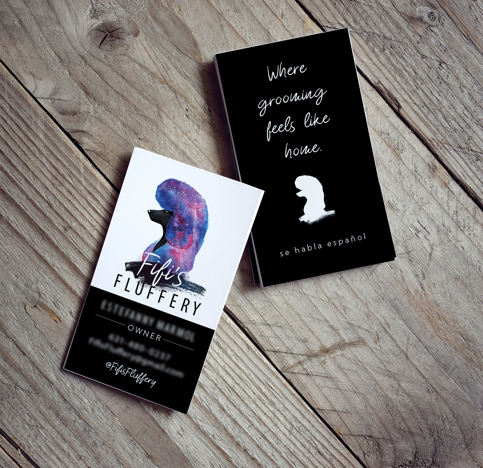 This dog groomer wanted a refresh to their poodle logo. I created multiple iterations. Once we had a design they were satisfied, I created a new layout for their business cards.