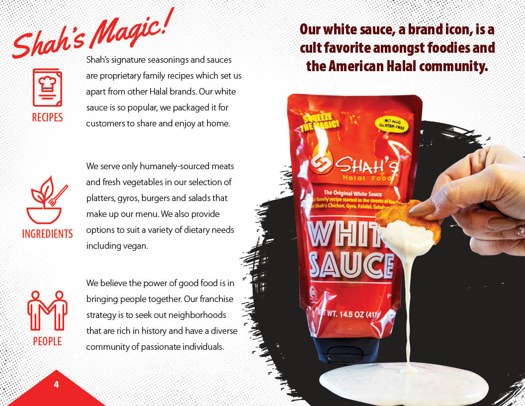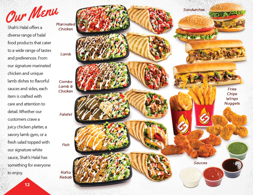 I recently worked with the owner on updating the interior signage for all new Shah’s Halal Food locations. They wanted something clean and modern. I created a new black & white mural, updated their window vinyl layouts, redesigned their hanging “Order Here” signs and designed a new plaque sign with their biography. I also created their Brand Deck (excerpts below) and drafted new motion graphics for their digital menu boards.